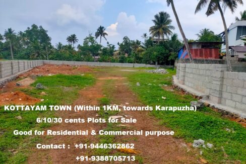 6/10/30 cent Plots (Good for both Residential & Commercial purpose) for Sale at Kottayam Town (within 1 KM towards Karapuzha). For details, please contact: +91-9388705713/…