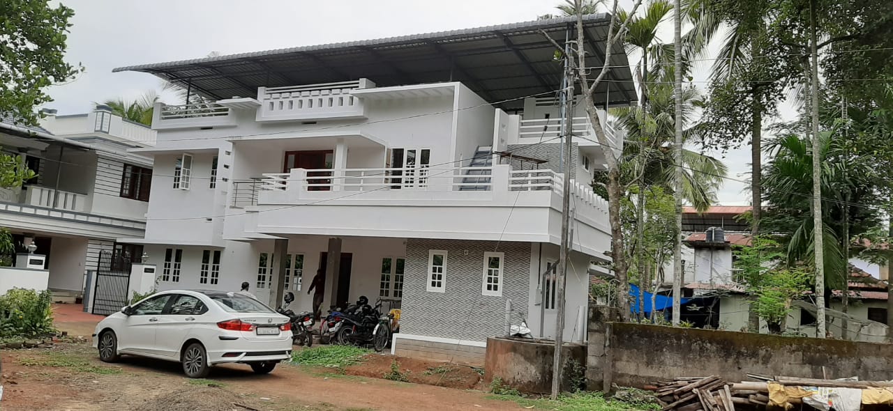 3bhk luxury house for sale in kuttumukkku,thrissur. It has a built up area of 2000 sqft and total land area of 6.5 cent .The house has compound wall, tar road frontage and well water availability, close to main road . House consist of 4 bedrooms, 4 attacthed and 1 common bathroom .This house has a fantastic built quality.Price: 65 lacs (Negotiable).