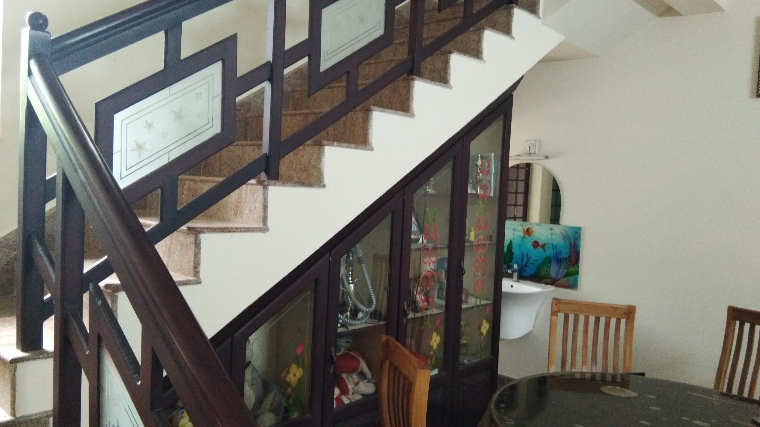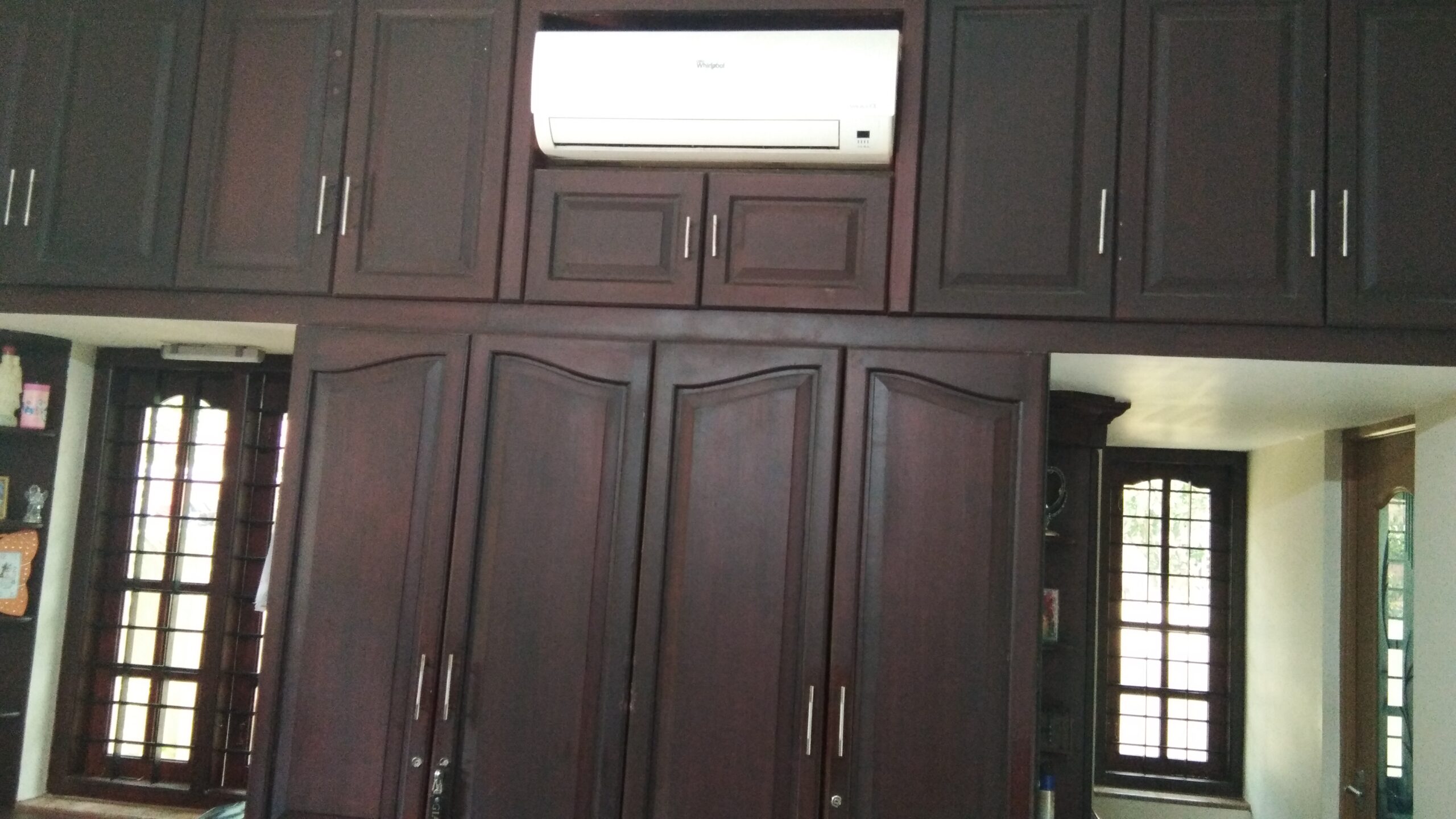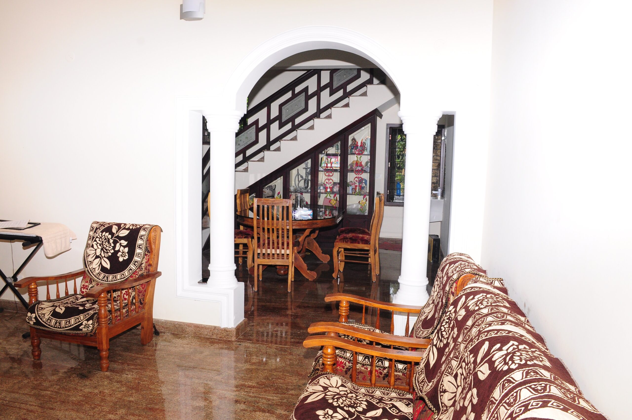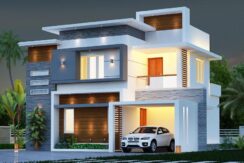 Total three spacious Bed rooms with Built in cupboards and dressing table, Two are with attached bath rooms and one common bath room, two living rooms, one is on ground floor and other is on first floor. Spacious kitchen and dining area. There is an open terrace and covered terrace, first floor room has a small balcony. All the floors are finished with granite slabs, only the branded materials are used for electrical and sanitary works. well maintained house on 20 cents of land with four side compound wall and the truck entering entrance.