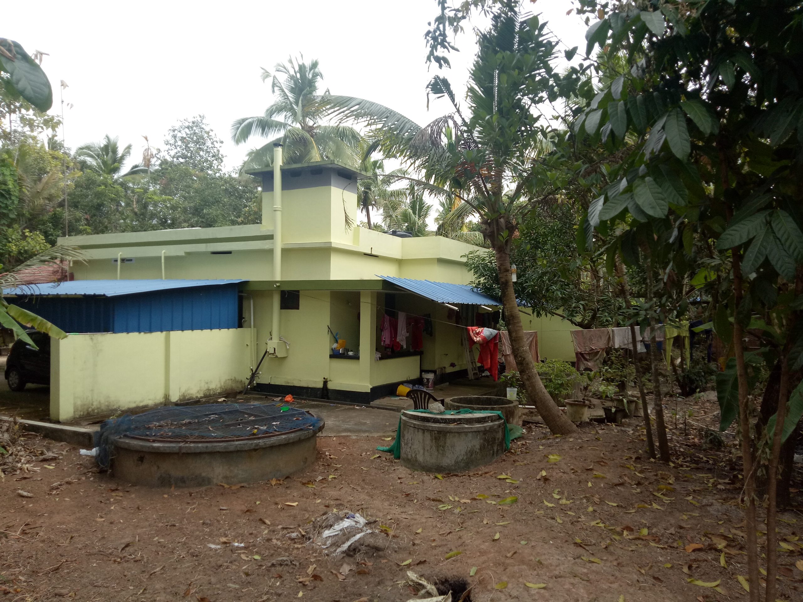 It has 4 bedroom house with surrounding compound wall, floor is completly filled with tiles, have seperate out house for storage purpose which is around 450 sq feet, total land including house is 22 cent, have public water connection, two car parking,