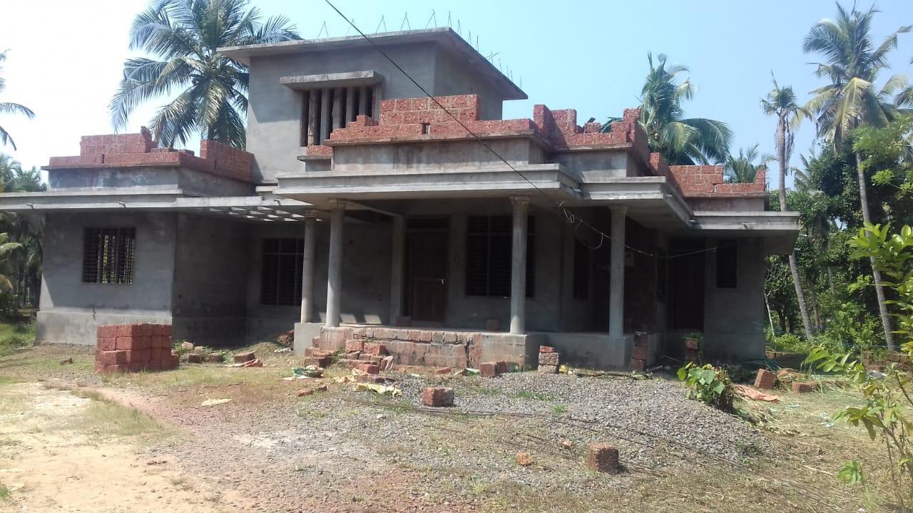 Land and semi-Finished house. 23 cents of land and 1800 sq feet house. 500 meters from main karivellur bazaar. Good location